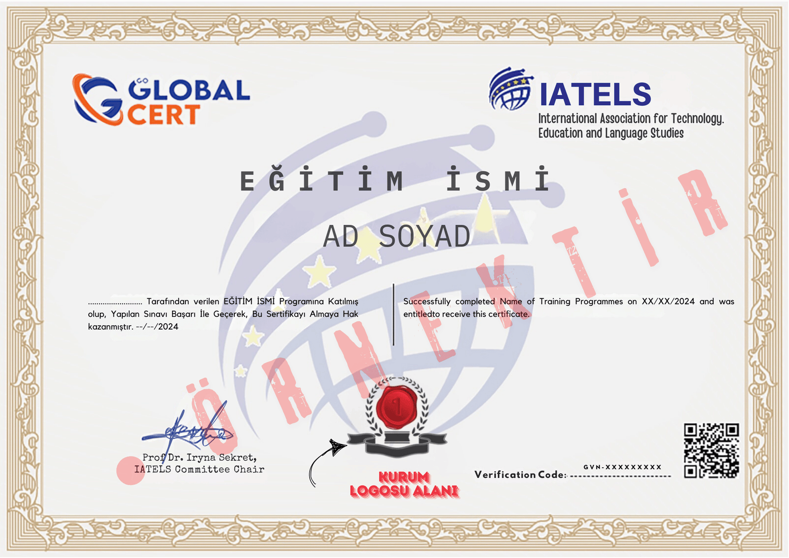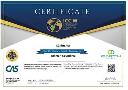 Akreditasyona sahip ICCW onaylı ve Sorgulanıp Görüntülenebilir özellikte verilecektir.
